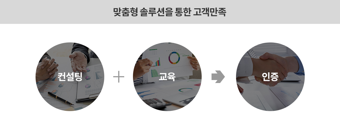 컨설팅, 교육훈련, 인증지원 및 기타고객의 요구에 부응하는서비스를 제공하고 있습니다.